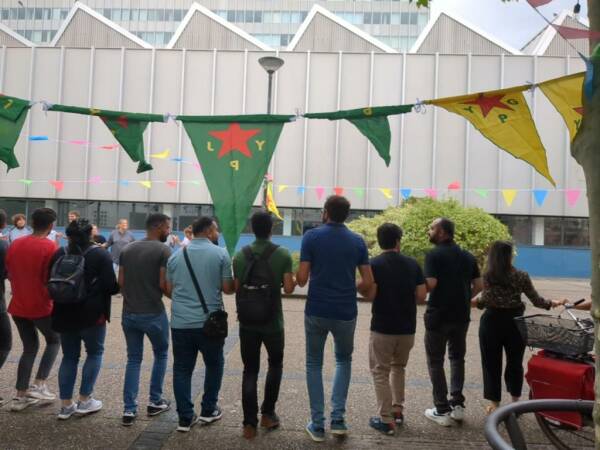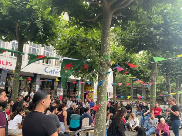 Am Sonntag hat in Frankfurt auf dem Campus Bockenheim ein kurdisch-internationalistisches Jugendfestival zum elften Jubiläum der Revolution von Rojava stattgefunden. Über den Tag verteilt haben etwa 200 Menschen teilgenommen.