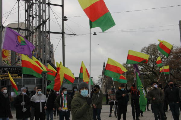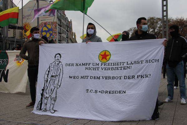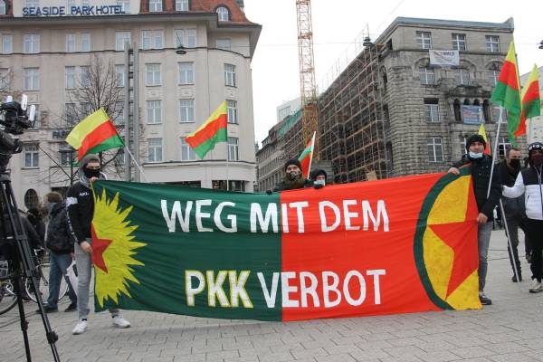 Geplant waren in Leipzig für den heutigen Tag zwei Kundgebungen der kurdischen Community. Zunächst fand im Rahmen des von der Initiative „Unsere Utopie gegen ihre Repression“ angestoßenen Aktionstags gegen das 1993 erlassene Betätigungsverbot gegen die kurdische Arbeiterpartei PKK eine Versammlung auf dem Willy-Brandt-Platz am Leipziger Hauptbahnhof statt. Viele der rund 150 Menschen hatten Fahnen in den kurdischen Farben grün, rot und gelb mitgebracht, auch einige kreative Transparente schmückten den Platz. Tahir Köçer unterstrich in einem Redebeitrag, dass der Kriminalisierung der kurdischen Befreiungsbewegung jegliche Legitimation fehle und das PKK-Verbot aufgehoben werden müsse. Aus den Reihen des Studierendenverbands YXK hieß es mit Verweis auf das wegweisende Urteil des belgischen Kassationsgerichtshofes, die PKK sei zu Unrecht auf der EU-Terrorliste. Nach den Ansprachen wurde zu kurdischer Musik getanzt.