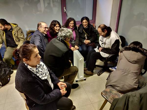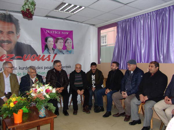 Hunderte Menschen besuchten gestern die Aktivist*innen, die sich seit dem 17. Dezember in Straßburg im unbefristeten Hungerstreik befinden. Vertreter*innen verschiedener Organisationen bekundeten vor Ort ihre Solidarität mit den Hungerstreikenden. Unter den Besuchern waren u.a. das Mitglied des Kurdistan Nationalkongresses Refik Gefur, der KONGRA-GEL Ko-Vorsitzende Remzi Kartal und das KCK-Exekutivratsmitglied Zübeyir Aydar. Auch der Vorsitzende der Islamischen Partei Kurdistans (PIK) Hikmet Serbilind, Vorstandsmitglieder der Demokratischen Alevitischen Föderation (FEDA) aus der Schweiz und Fikret Igrek vom Şengal Diaspora-Rat unterstützten die Hungerstreikenden mit ihrem Besuch. Neben den Vertreter*innen der Institutionen strömten auch Hunderte Menschen aus Deutschland, Frankreich und der Schweiz zu den Hungerstreikaktivist*innen nach Straßburg.