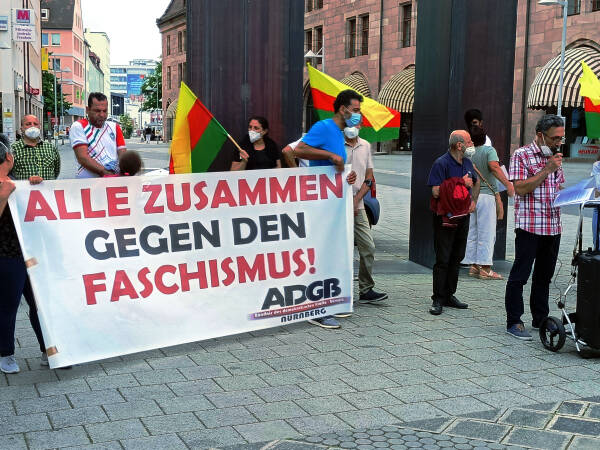 In Nürnberg haben sich zahlreiche Menschen am Sonnabend in der Innenstadt versammelt. Mehrere Sprecher:innen brachten auf Kurdisch, Türkisch und Deutsch ihr Entsetzen zum Ausdruck. In einer Rede wurde die Tat in einen Zusammenhang gestellt mit der nicht nur in der Türkei verbreiteten nationalistisch-rassistischen Ideologie: