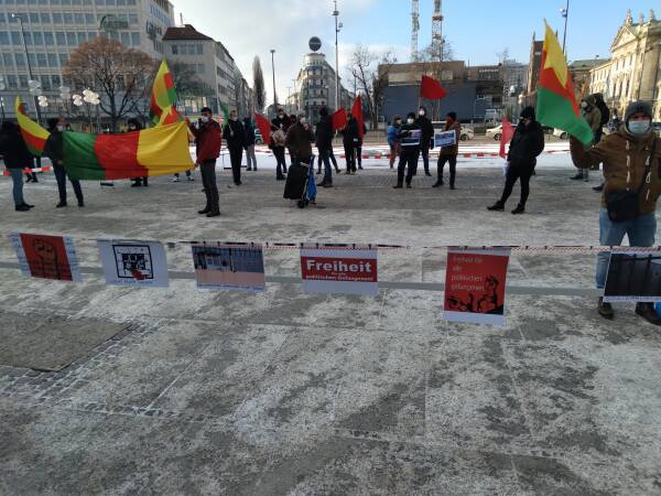 In mehreren Städten im deutschen Bundesgebiet haben diesen Samstag wieder Kundgebungen zur Unterstützung des seit über fünfzig Tagen andauernden Hungerstreiks gegen die Isolation Abdullah Öcalans und die Haftbedingungen politischer Gefangener in der Türkei stattgefunden. Der am 27. November von inhaftierten PKK- und PAJK-Mitgliedern initiierte Protest hat sich rasend schnell zu einer Widerstandsbewegung entwickelt, an dem sich bisher tausende Gefangene in mehr als hundert Gefängnissen beteiligten. Um der Forderung der Hungerstreikenden „Nachdruck zu verleihen“, finden täglich weltweit Mahnwachen und Solidaritätsaktionen statt.
