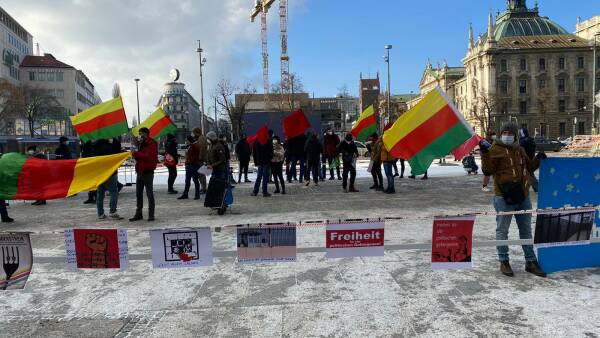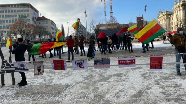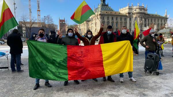 In München hatten der Frauenrat Sara und das kurdische Gesellschaftszentrum DKTM zu einer Kundgebung am Stachus aufgerufen. An der Kundgebung nahmen auch Internationalist*innen teil, es wurde eine Erklärung von KON-MED verlesen.