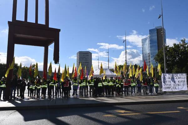 Zum Auftakt der Kundgebung fand eine Schweigeminute für die Gefallenen des kurdischen Befreiungskampfes statt. Mit dem Rufen von Parolen drückten die Demonstrant:innen ihre Solidarität mit der Guerilla aus, die seit Monaten in Südkurdistan mit chemischen Kampfmitteln angegriffen wird. Der Genfer CDK-Vorsitzende Salih Sağlam sagte in einer Rede, dass die türkische Kriegsführung unter Aufsicht der UN stattfindet.