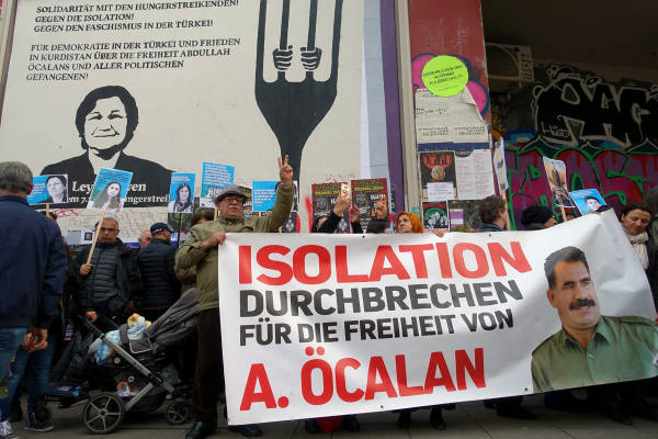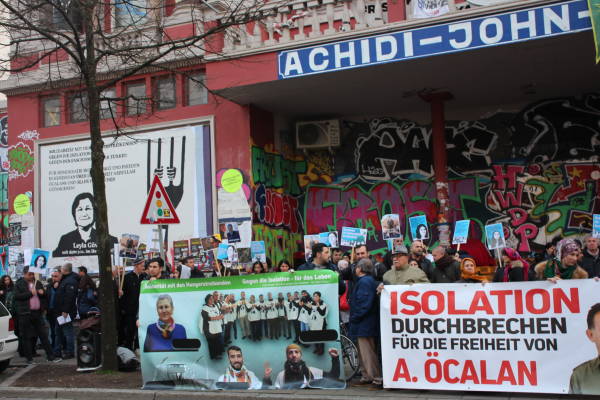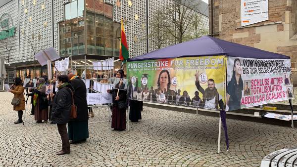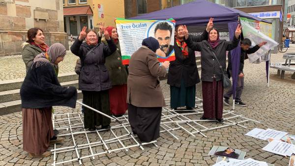 Seit Montag führt die Frauenkommune Şehîd Meryem in Hildesheim eine Mahnwache für die Aufhebung der Isolation des kurdischen Repräsentanten Abdullah Öcalan und in Solidarität mit den hungerstreikenden Gefangenen durch. Die Aktion ist auf die Dauer von sechs Monaten angesetzt. Gestern unterbrachen die Aktivistinnen ihre Mahnwache für einen Moment, Abdullah Öcalan zum Geburtstag zu gratulieren.