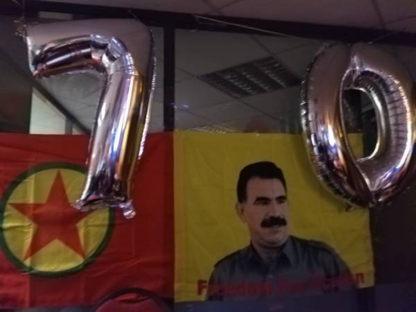 Der kurdische Repräsentant Abdullah Öcalan, der 1999 völkerrechtswidrig aus der griechischen Botschaft im kenianischen Nairobie auf die türkische Gefängnisinsel Imrali im Marmarameer verschleppt wurde, ist gestern siebzig Jahre alt geworden. An vielen Orten der Welt fanden aus diesem Anlass Geburtstagsfeiern für den seit Jahren totalisolierten PKK-Gründer statt. Hier eine kleine Auswahl: