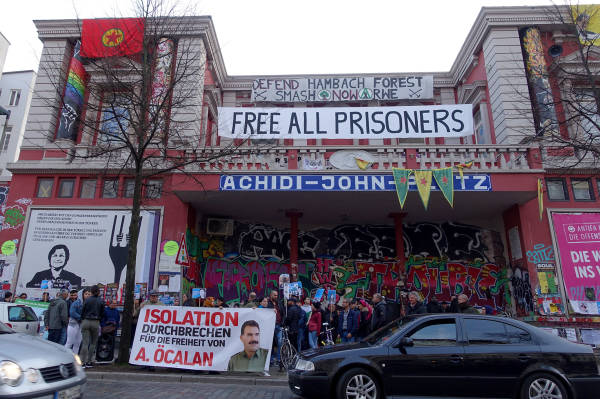 In Hamburg fanden sich am Abend 100 Menschen vor dem Stadtteilzentrum Rote Flora zusammen, um Abdullah Öcalans Geburtstag zu feiern und über den Hungersrtreik zu informieren. Neben Redebeiträgen und Musik gab es ein kleines Feuerwerk.