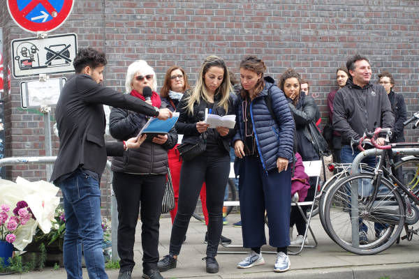 Auf dem Weg zum Hein-Köllisch-Platz wurden die Namen vieler durch Rassismus ermordeter Menschen gerufen. Namen wie Achidi John, Halim Dener, Ahmad Amad, Oury Jalloh und viele weitere. Auf dem Hein-Köllisch-Platz sprach noch einmal Zuhal, die Schwester von Semra Ertan. Sie dankte allen Mitwirkenden und betonte, dass Menschen, die lange hier lebten, keine Ausländer seien, dass sie auch nicht zurückgehen werden, denn sie gehören zu diesem Land. Damit spielte sie auf Semra Ertans bekanntestes Gedicht „Mein Name ist Ausländer“ an.