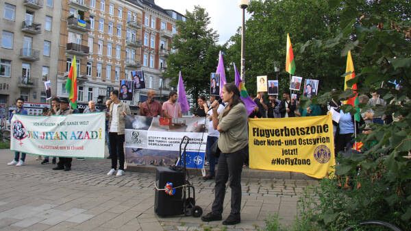 Die Proteste nach dem tödlichen Angriff auf ein Fahrzeug des Fernsehsenders Jin TV in der Autonomieregion Nord- und Ostsyrien am vergangenen Mittwoch halten an. Bei dem Drohnenangriff auf der Straße zwischen Qamişlo und Amûdê wurde der Fahrer Necmeddîn Feysel Hec Sînan getötet und die Journalistin Delîla Egîd schwer verletzt. In Hamburg fand am Dienstagabend eine Kundgebung statt, zu der der Frauenrat Rojbîn und die Initiative Defend Kurdistan aufgerufen hatten. Auf Transparenten wurde die Einrichtung einer Flugverbotszone über Rojava gefordert.