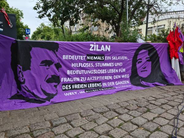 Der junge Kurde Halim Dener wurde nur 16 Jahre alt. Er wurde von einem deutschen Polizisten erschossen. Etwas mehr als ein halbes Jahr nach dem PKK-Verbot fand in Deutschland eine politische Hatz auf Kurdinnen und Kurden statt. Die Menchen aus Kurdistan wurden als Terroristen diffamiert und zur Bedrohung stilisiert. In diesem Klima wurde Halim Dener von deutschen Polizisten beim Aufhängen von Plakaten der damaligen PKK-Frontorganisation ERNK gestellt und erschossen. Seither wird jedes Jahr an den Tod des jungen Kurden erinnert. Auf den 30. Juni fällt noch ein anderer wichtiger Jahrestag. Am 30. Juni 1996 verübte die Guerillakämpferin Zîlan (Zeynep Kınacı) einen Anschlag auf eine Militärparade in der nordkurdischen Stadt Dersim. Zîlan sprengte sich selbst inmitten der Parade in die Luft und setzte mit ihrer Aktion ein Fanal für die kurdische Frauenfreiheitsbewegung. Deshalb waren auf der Kundgebung am Dienstagabend auch Bilder der legendären Guerillakämpferin zu sehen.