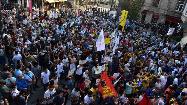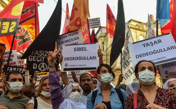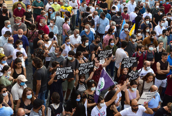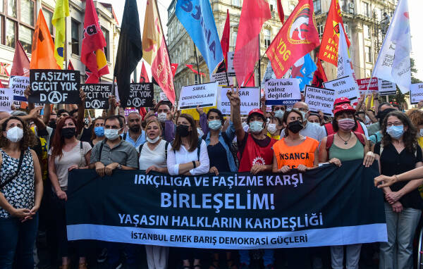 Zu der Protestkundgebung in Istanbul hatte das Bündnis für Arbeit, Frieden und Demokratie aufgerufen. Trotz massiver Polizeiblockade kamen Tausende Menschen am Tünel auf der Istiklal Caddesi zusammen, um ein Signal gegen Rassismus und Faschismus zu setzen. Für den siebenfachen Mord in Konya wurde die polarisierende Regierungspolitik verantwortlich gemacht. Die Menschenmenge skandierte „Schulter an Schulter gegen Faschismus“, auf Schildern waren die Namen der Todesopfer zu lesen sowie die Aussage: „Das kurdische Volk ist nicht allein.“