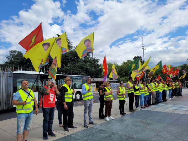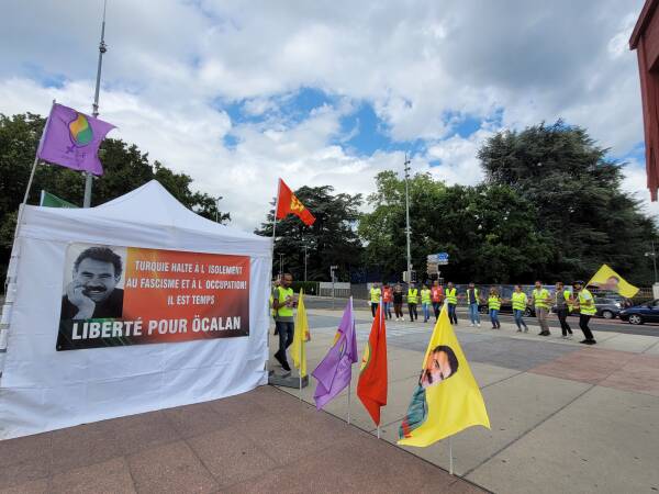 Wie jeden Mittwoch hat der kurdische Verband CDK-S vor dem UN-Sitz in Genf gegen das internationale Schweigen zu den türkischen Angriffen auf Kurdistan protestiert und Freiheit für Abdullah Öcalan gefordert.