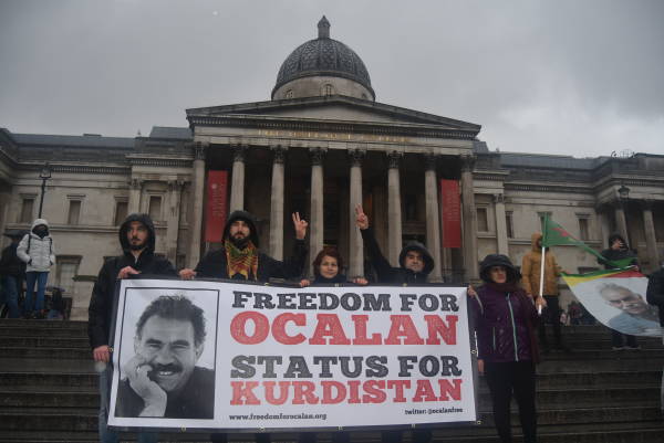 Wie an vielen anderen Orten weltweit sind auch in London Aktivist*innen zusammengekommen, um an die Verschleppung des kurdischen Friedenspolitikers Abdullah Öcalan zu erinnern und seine Freilassung zu fordern.