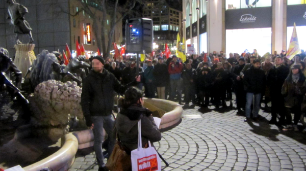 Unter den Teilnehmenden waren auch einige Kurd*innen, denn unter den Opfern des Anschlags sind auch einige Mitglieder aus dem kurdischen Verein in Hanau. „Wir als Kurd*innen sind überall mit Faschismus und Tod konfrontiert. In unserer Heimat wird ein Krieg gegen uns geführt und hier in Europa müssen wir mit Behörden um unsere Rechte kämpfen, werden kriminalisiert und sind gleichzeitig Opfer von rassistischen Übergriffen und Morden, wie gestern in Hanau.“