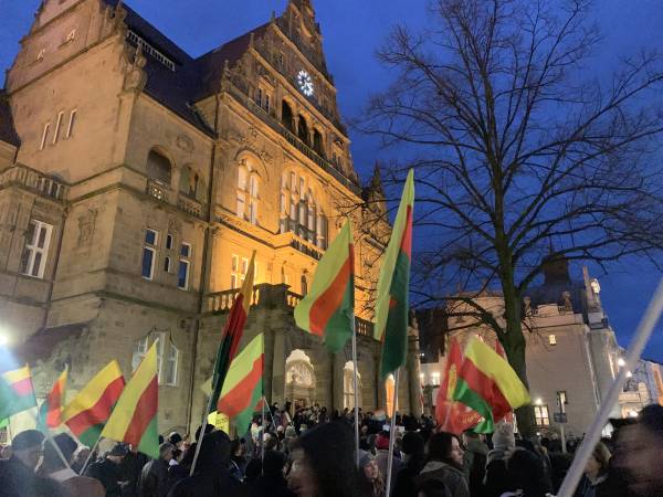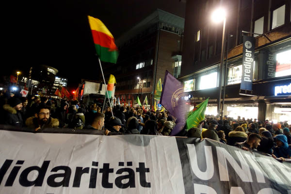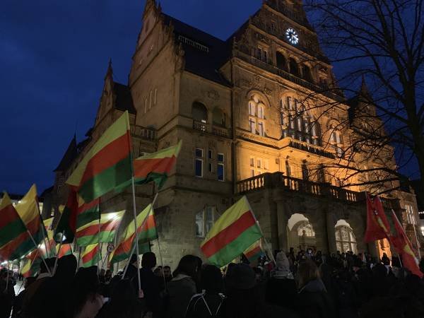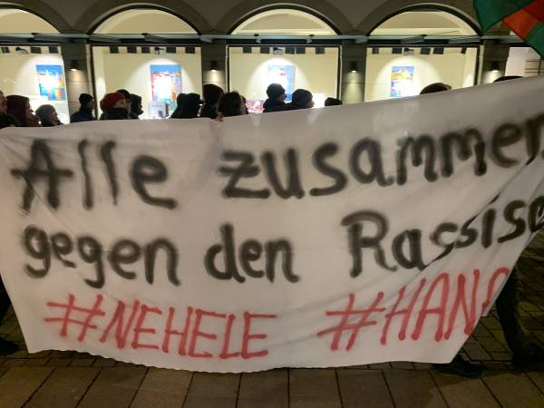 In Celle versammelten sich nach einem Aufruf der örtlichen Kampagne #Riseup4Rojava unter dem Motto „Solidarität und Protest - Gemeinsam gegen Faschismus“ um 18 Uhr spontan um die 90 Menschen auf der Stechbahn. Die Teilnehmer*innen betonten, dass dieser Anschlag kein Einzelfall ist, sondern mit anderen Anschlägen, unzähligen Angriffen und der immer stärker werdenden Präsenz von Rassismus und rechtem Gedankengut in Verbindung steht.