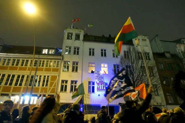 In Hamburg gedachten 4.000 Menschen der Opfer von Hanau. Die Demonstration startete mit einer Kundgebung auf dem Platz vor dem #noAfD-Büro. Die Parole des Protests lautet: „Alle zusammen gegen den Faschismus!“