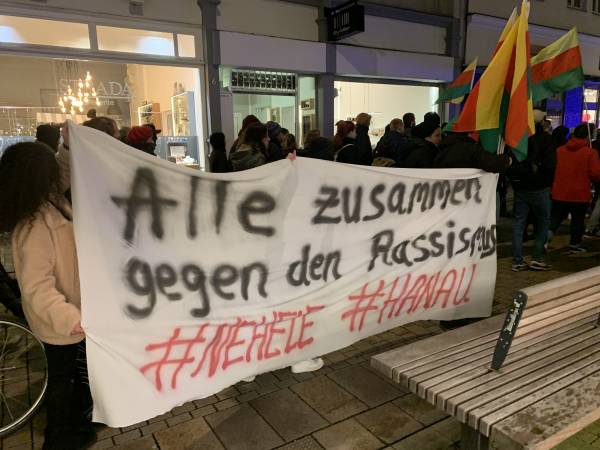Bundesweit haben am Donnerstagabend in mehr als 70 Städten Demonstrationen, Kundgebungen und Mahnwachen stattgefunden, um den Toten zu gedenken und ein Zeichen gegen Faschismus zu setzen. In Hanau selbst fand ab 18 Uhr eine öffentliche Gedenkfeier für die Opfer des rassistischen Anschlags statt. Die Menschen waren zu Tausenden gekommen, schwankten zwischen Tränen, Wut und Trauer. Unter den Rednern waren Bundespräsident Steinmeier und Ministerpräsident Bouffier. Dessen Rede wurde von wütenden und lauten Zwischenrufen „NSU“ und „Gebt die NSU-Akten frei!“ gestört. Die interventionistische Linke (iL) kommentierte bei Twitter: „Die politischen Repräsentanten lassen weder die Opfer zu Wort kommen, noch nennen sie die Tat beim Namen: Rassismus. Aber es redet Bouffier, der seine schützende Hand über den NSU legte. Die Staatsmänner treten von der Bühne ab. Es folgen wütende Rufe. Für die Würde der Angehörigen gibt es nur Respektlosigkeit. Unglaubliches was hier wieder passiert.“