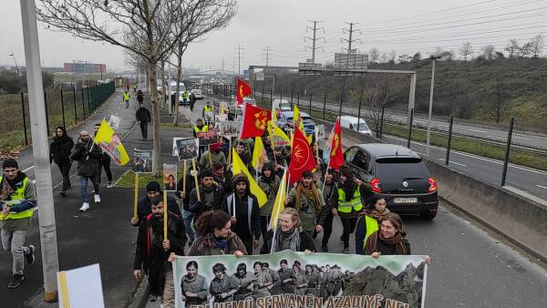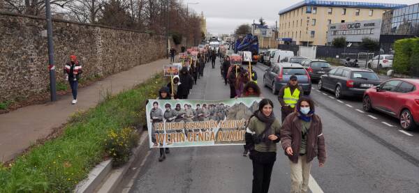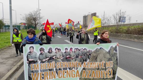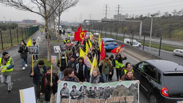Im Anschluss an den Kongress hat am Montag eine dreitägige Demonstration der Jugendbewegung im Pariser Vorort Drancy begonnen. „Wir sind alle Freiheitskämpfer:innen – Kommt zu Befreiungskampf!“ steht auf Kurdisch auf einem mitgeführten Transparent. Heute wurden bei guter Stimmung zwanzig Kilometer zurückgelegt.