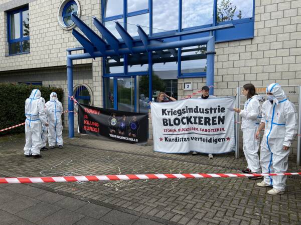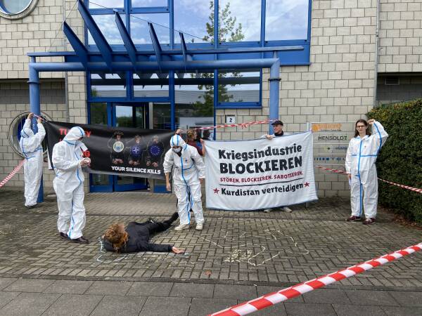 „Hensoldt und die deutsche Regierung sind mitschuldig an den Angriffen der Türkei auf Rojava. Mit Drohnen und Kriegsflugzeugen wurde lebenswichtige Infrastruktur zerstört. Das ist ein klares Kriegsverbrechen“, betont Milo Marcks, Pressesprecher der Kampagne.