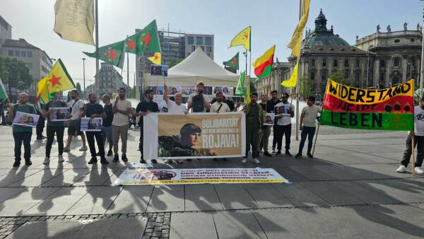 In der bayerischen Landeshauptstadt versammelten sich die Protestierenden am Stachus. Nach Redebeiträgen, in denen die Angriffe und das internationale Schweigen verurteilt wurden, protestierten die Teilnehmerinnen und Teilnehmer lautstark mit Parolen wie „Terrorist Erdoğan“.