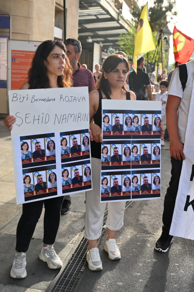 Am Mittwoch fanden in vielen Städten in der Schweiz und in Deutschland Proteste statt. Am Dienstag wurden bei einem gezielten türkischen Drohnenangriff Yusra Derwêş, die Ko-Vorsitzende des Kantons Qamişlo, ihre Stellvertreterin Lîman Şiwêş und ihr Fahrer Firat Tuma, der zugleich Mitglied des Kantonsrates von Qamişlo war, getötet. Kurdische Verbände wie der KCDK-E, die Frauenbewegung TJK-E, der Schweizer Dachverband CDK-S und der Verband kurdischer Frauen in der Schweiz, YJK-S hatten zum Protest aufgerufen.