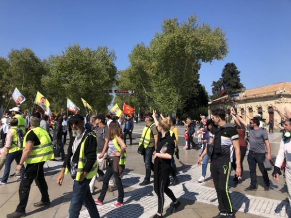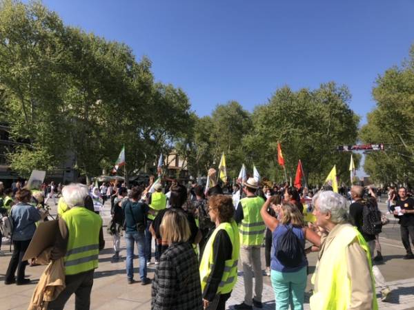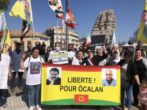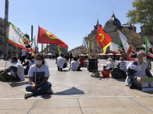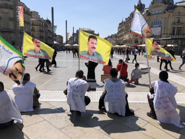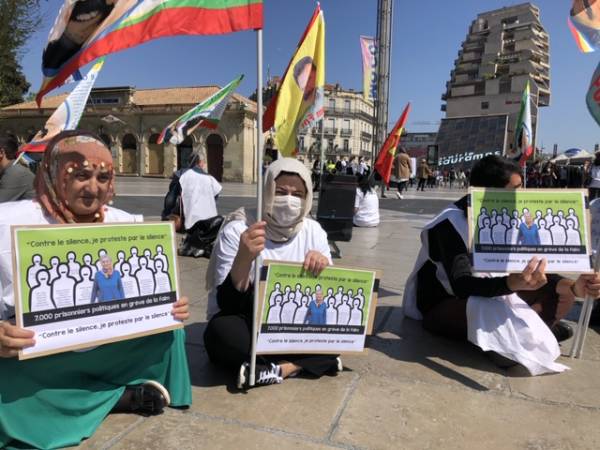 In Montpellier fand eine ähnliche Aktion auf dem Place de la Comédie statt. Drei Aktivistinnen hielten sich symbolisch Mund, Augen und Ohren zu, um auf die Ignoranz des Hungerstreiks hinzuweisen. Auf Flugblättern wurde der Hintergrund der Aktion erklärt. Aktivist*innen der Gelbwestenbewegung unterstützten den stillen Protest und riefen Parolen wie „Öcalan ist auch mit uns”, „Freiheit für Öcalan” und „Widerstand heißt Leben”.