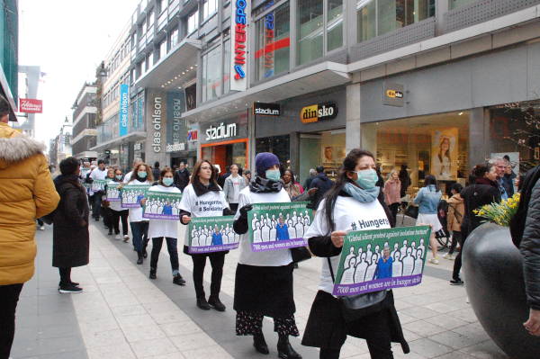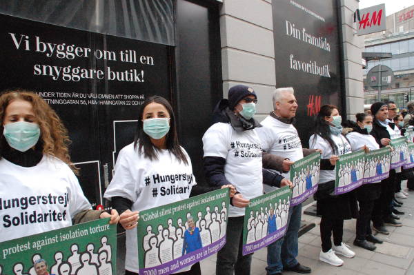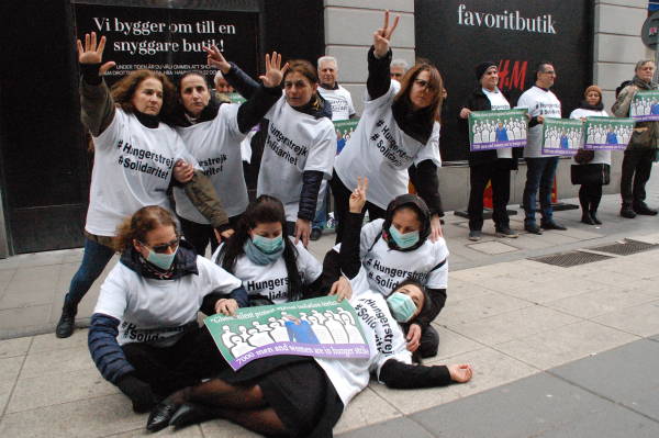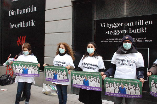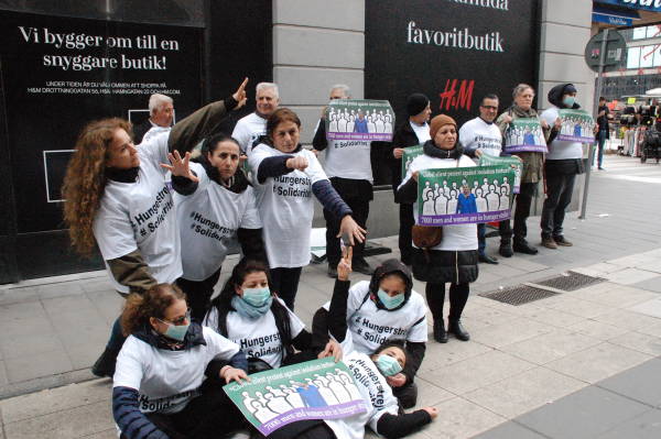 In der schwedischen Hauptstadt Stockholm traf sich eine Menschenmenge auf der zentral gelegenen Drottninggatan (deutsch: Königinstraße). Die Aktivist*innen trugen T-Shirts mit der Aufschrift „Solidarität mit dem Hungerstreik” und Bildern von Leyla Güven.