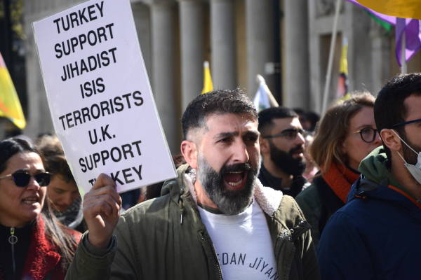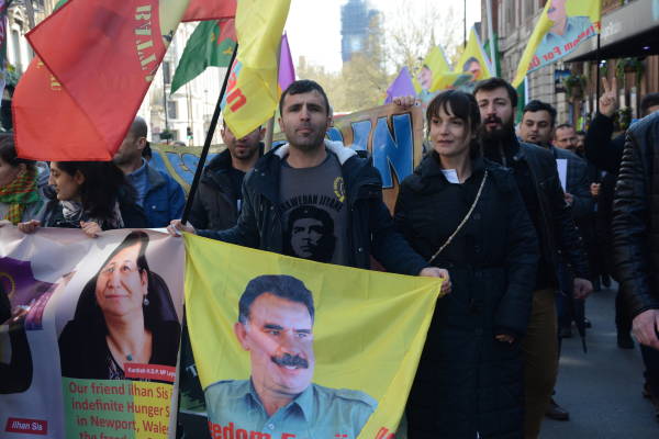 Nach einer Schweigeminute für die Gefallenen der kurdischen Befreiungsbewegung leitete Özdemir den Protest mit einer Ansprache ein. Er wies zunächst darauf hin, dass der Hungerstreik von mehr als 7.000 politischen Gefangenen in türkischen Gefängnissen und zahlreicher Aktivist*innen weiterhin totgeschwiegen wird. Anschließend sagte Özdemir: „Als Sozialist erfüllt es mich mit Stolz, an der von Leyla Güven initiierten Widerstandsbewegung teilzunehmen. Ich bin mir sicher, dass unser Kampf Früchte tragen wird. Wir werden die Isolation durchbrechen und dem Faschismus eine Niederlage bereiten”. Die Aktion endete mit der Parole „Freiheit für Öcalan”.