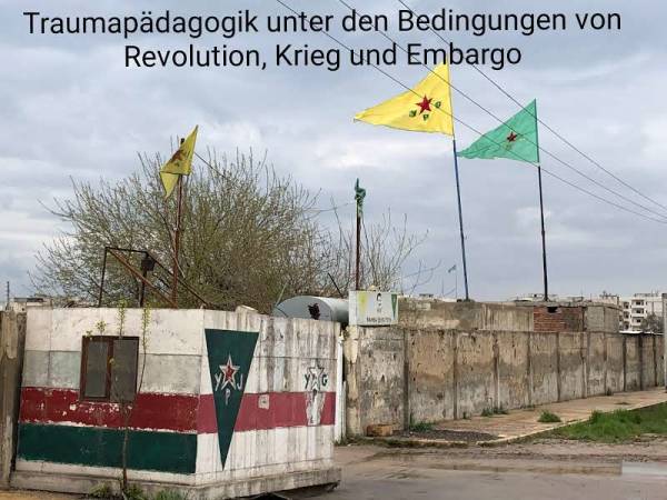 Im April reiste ein Team des Zentrums für Traumapädagogik der WELLE aus Hanau zum wiederholten Mal nach Kobanê und Qamişlo in der Demokratischen Föderation Nordostsyrien und setzte seine Fortbildungsreihe mit Mitarbeiterinnen und Mitarbeitern eines Waisenhauses und der „Stiftung der freien Frauen in Rojava" fort. Wenige Tage nach dem Jahrestag der Revolution von Rojava am 19. Juli berichtete das Team am Dienstag auf einer Veranstaltung des Vereins Städtefreundschaft Frankfurt-Kobane über die traumapädagogische Arbeit unter den Bedingungen der Revolution, des Krieges und des Embargos.