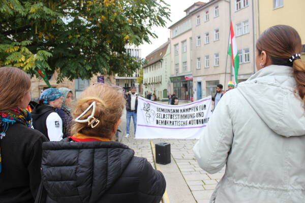 An der Universität in Jena finden derzeit die „Alternativen Orientierungstage für Studierende“ statt. In diesem Rahmen hat das lokale Komitee der Kampagne „Women Defend Rojava“ (WDR) eine Veranstaltung organisiert, bei der über die kommunalen Basistrukturen und die politischen Arbeiten der Frauen in der Demokratischen Selbstverwaltung von Nord- und Ostsyrien (DAANES) informiert worden ist. Rund 50 Interessierte folgten dem Vortrag, in dessen Anschluss gemeinsam an einer Demonstration gegen die aktuellen Angriffe auf die kurdischen Stadtviertel in Aleppo teilgenommen wurde.