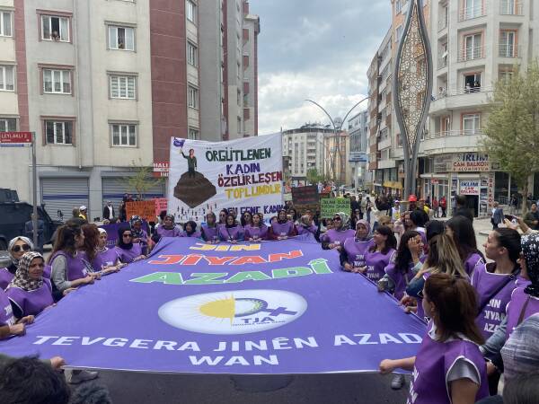 In Wan haben Tausende Menschen an einer Demonstration zum 1. Mai teilgenommen. Die Veranstaltung wurde vom Verband der Revolutionären Arbeitergewerkschaften (DISK), der Konföderation der Gewerkschaften des Öffentlichen Dienstes (KESK) und weiteren Berufsverbänden wie der Anwalts- und Ärztekammer organisiert und stand unter dem Motto „Wir machen die Arbeit, wir haben das Wort“. Mitglieder der Journalistenvereinigungen DFG und MKG protestierten mit einem Transparent mit der Aufschrift „Ihr könnt uns nicht zum Schweigen bringen“ gegen die jüngsten Verhaftungen von Medienschaffenden in der Türkei. Aktivistinnen der Bewegung freier Frauen (TJA) nahmen mit einem großen „Jin Jiyan Azadî“-Banner teil.