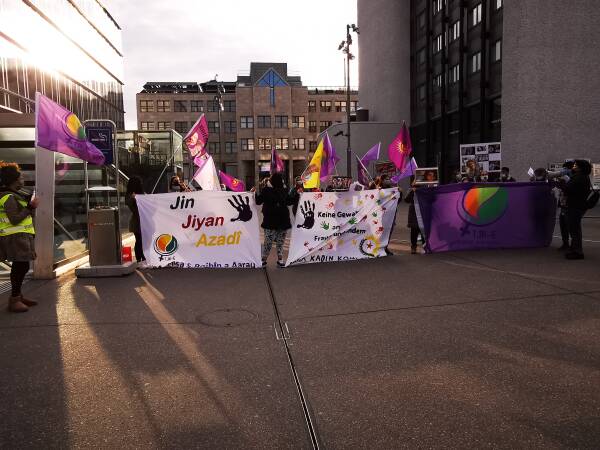 Die Kundgebung begann mit einer Schweigeminute für alle Opfer patriarchaler und staatlicher Gewalt. In Redebeiträgen wurde über den von Erdogan rechtswidrig angeordneten Rückzug aus dem Frauenschutzabkommen informiert. Der türkische Präsident habe damit seine Kompetenzen überschritten, erklärten die Aktivistinnen und forderten, die Entscheidung rückgängig zu machen.