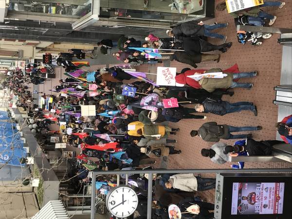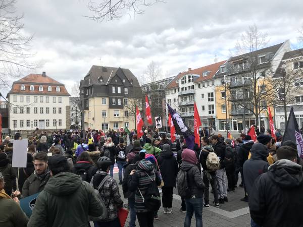 Bei einer Demonstration des „8.-März-Bündnis“ in Gießen wurde die Performance „Der Vergewaltiger auf meinem Weg“ aus Chile aufgeführt.