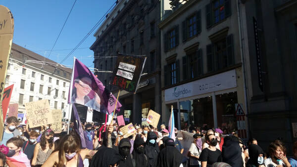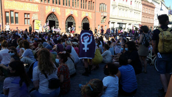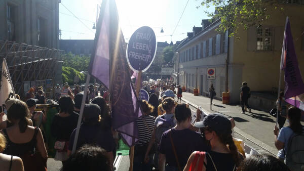 Antipatriarchaler Streik in Basel stellt sich gegen Krieg in Kurdistan