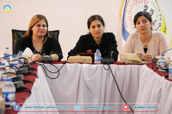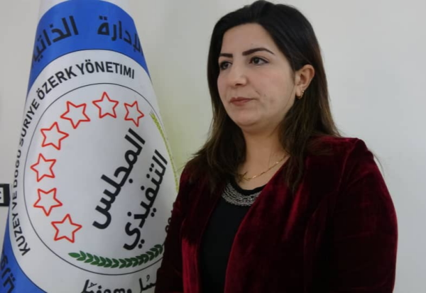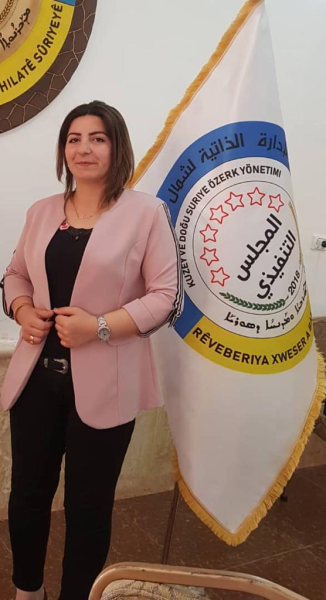 Manchmal wurden wir von Schmerzen zerrissen. Aber wir hörten niemals auf davon zu träumen, unsere Regionen zu befreien. Die Schwangerschaft mit dem dritten Kind durchlief ich ohne meinen Mann. Er kämpfte damals gegen den IS. Dennoch gaben wir uns gegenseitig Halt. Mitte 2016, als die revolutionären Kräfte, unter deren Dach auch Jabhat al-Akrad vereint war, die Offensive zur Befreiung von Şehba starteten, folgten wir ihnen Schritt um Schritt in die Dörfer. Als alle 74 Ortschaften befreit waren, wurden alle Komponenten des Zivilrats nach Şehba verlagert. Ich lebte in Efrîn, fuhr aber jeden Tag hin und her.“