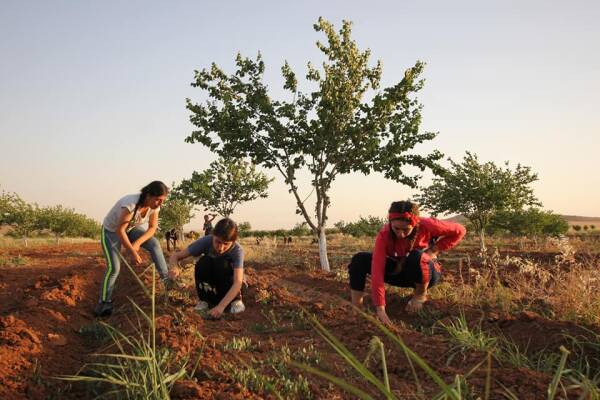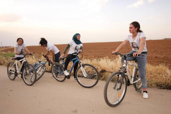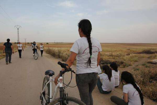 Darüber hinaus gab es an den Nachmittagen auch Workshops wie zum Beispiel Fahrradfahren, Schwimmen und Taekwondo. Die Teilnehmerinnen haben auch an den alltäglichen Arbeiten der Bewohnerinnen von Jinwar teilgenommen, es wurde gemeinsam Brot gebacken, Unkraut gejätet und die Bäume gegossen. Dadurch haben die jungen Frauen auch das kommunale Leben der Frauen und Kinder von Jinwar kennengelernt. So wurden sie selbst Teil eines Beispiels für eine alternative Lebensform, in der Frauen Entscheidungen treffen und auf der Grundlage geteilter Prinzipien wie gegenseitigem Respekt, Solidarität und Teilen ihr Leben gemeinsam gestalten.