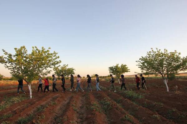 Bereits 2018 hat in Jinwar ein Jineolojî-Camp stattgefunden. Dieses Mal lag der Schwerpunkt der Bildungsreihe auf dem Thema „Xwebûn" (Selbstwerdung, Selbstsein), dabei ging es um Fragen wie: Wie werden wir wir selbst? Wie können wir als junge Frauen in dieser Gesellschaft einen starken Willen haben und gute und ethische Entscheidungen treffen?