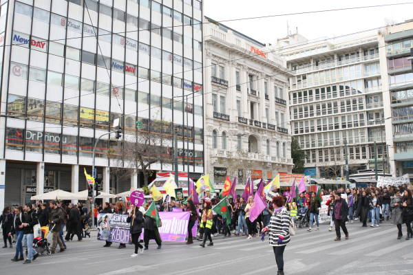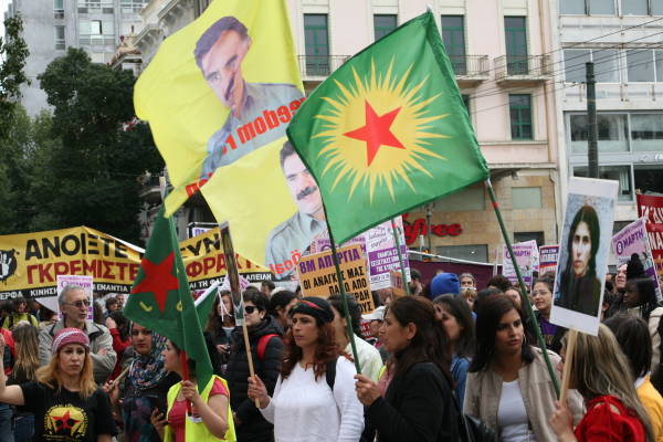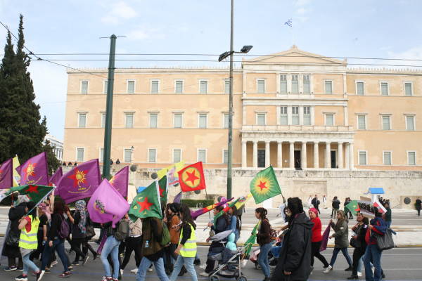 In der griechischen Hauptstadt Athen zogen Frauen vor das griechische Parlament. An der Aktion nahmen auch viele kurdische Frauen teil. Sie trugen Fahnen der YPJ und Bilder von Abdullah Öcalan. Die kurdischen Frauen riefen immer wieder „Die Revolution von Rojava ist eine Revolution der Frauen“.