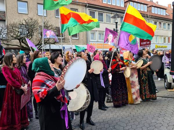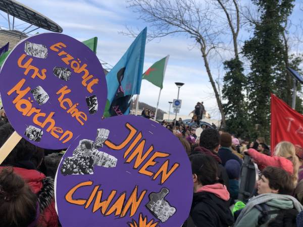 In Berlin, Kiel, Hildesheim, Kassel, Nürnberg, Braunschweig, München, Freiburg, Hamburg und an vielen anderen Orten gingen kurdische Frauen zusammen mit Aktivistinnen aus der ganzen Welt auf die Straße.