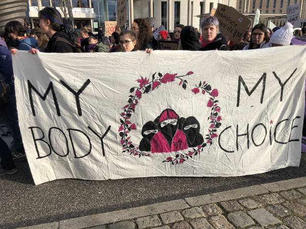 In vielen Städten in Europa gingen Frauen zum 8. März auch unter der kurdischen Parole „Jin Jiyan Azadî“ (Frauen Leben Freiheit) auf die Straße.