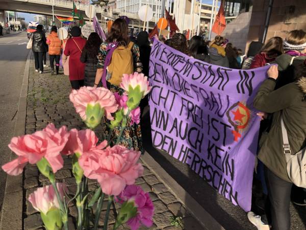 In Freiburg fand eine Frauendemonstration statt, an der sich die Organisation der Jungen Freien Frauen (JCA) beteiligte. Die Teilnehmerinnen trugen Fahnen der YPJ. Bei der Aktion wurde die Entschlossenheit im Kampf gegen das Patriarchat und Frauenmorde betont.