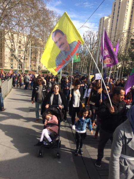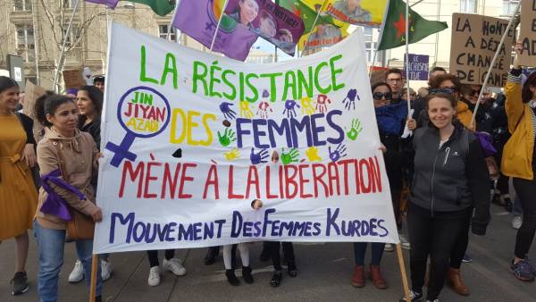 Wie in vielen anderen französischen Städten auch versammelten sich hier Tausende Frauen. An der Demonstration nahmen viele kurdische Frauen von der Frauenkommune Delal Amed teil.