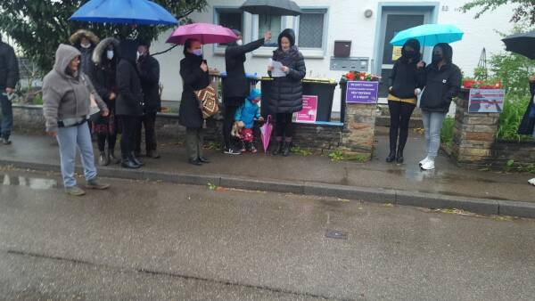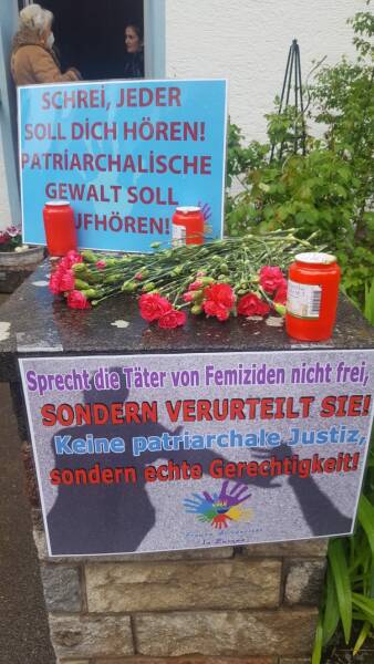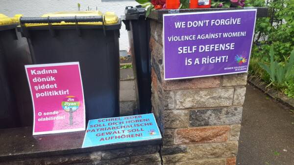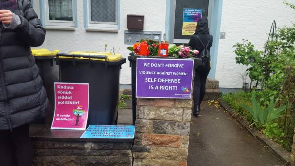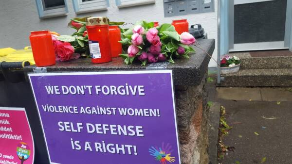 Am frühen Donnerstagabend versammelten sich Aktivistinnen des Stuttgarter Aktionsbündnisses Plattform 8. März, der TJK-E und vom Sozialistischen Frauenbund (SKB) vor dem Haus, in dem Mizgin A. tot aufgefunden wurde, zu einer Mahnwache. Nach einer Schweigeminute für die Kurdin wurden Blumen niedergelegt und Kerzen angezündet. In einer gemeinsamen Erklärung verurteilten die Organisationen patriarchale Gewalt und forderten die Politik auf, Femizid als eigenen Straftatbestand zur Abschreckung von Tätern einzuführen. Bevor sich die Frauen vom Tatort verabschiedeten, riefen sie noch die Maxime der kurdischen Frauenbewegung „Jin, Jiyan, Azadî“ (Frauen, Leben, Freiheit).