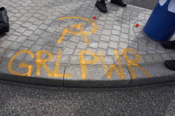 Nachdem wir über eine Stunde lang den Verkehrsknotenpunkt der Stadt Zürich besetzten, lösten wir uns eigenständig auf und zogen von dannen. Aber keine Frage, wir kommen wieder – und zwar noch wütender als zuvor! Wir grüßen alle Frauen* weltweit, die rund um den internationalen Frauen*kampftag auf die Straße gehen, streiken und gegen das Patriarchat Widerstand leisten.“