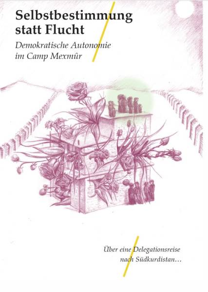 Zum Newrozfest in Frankfurt am Main ist die Broschüre „Selbstbestimmung statt Flucht. Demokratische Autonomie im Camp Mexmûr“ erschienen. Sie ist das Ergebnis einer Delegationsreise aus Deutschland nach Südkurdistan (Nordirak) im Sommer 2018 und entstand in Kooperation mit den Kampagnen „Gemeinsam kämpfen“ und „TATORT Kurdistan“. Auf ca. 65 Seiten sind zahlreiche Interviews mit unterschiedlichen Strukturen der örtlichen Selbstverwaltungsstrukturen des Camps abgedruckt, unter anderem mit dem Frauenrat Iştar, dem Gesundheitsrat und der Ökonomiekommission.