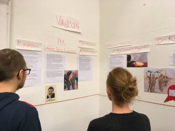 Im Centro Sociale im Stadtviertel St. Pauli in Hamburg veranstaltete die Jugendprojektgruppe Lelka&Mania am Freitagabend einen Filmeabend, gezeigt wurde der Spielfilm „Berfîn“ der Guerillafilmgruppe SineCiya. Es waren über 80 überwiegend junge Menschen anwesend, der Raum bis auf den letzten Platz gefüllt. Parallel dazu wurde eine liebevoll selbstgestaltete Ausstellug gezeigt, welche in das Thema „Revolution in Rojava“ einführte.