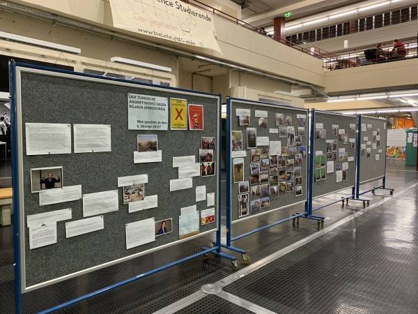 Um auf den weiterhin andauernden Krieg der Türkei in Rojava aufmerksam zu machen, haben die Studierendenverbände YXK und JXK an der Universität Bielefeld eine chronologische Bilderausstellung zu den wichtigsten Ereignissen angefertigt. In Fotos und Texten wird der Angriffskrieg der Türkei mit europäischer Rückendeckung thematisiert.