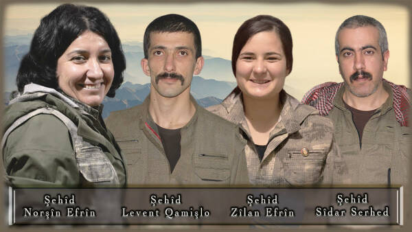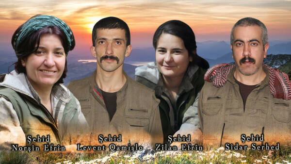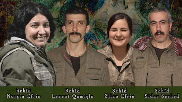 „Wir gedenken unserer Weggefährt:innen Norşîn, Sîdar, Zîlan und Levent zum Jahrestag ihres Todes als Gefallene mit Respekt und Dankbarkeit und sprechen ihren wertvollen Familien und dem gesamten patriotischen Volk Kurdistans unser Beileid aus“, erklären die HPG.