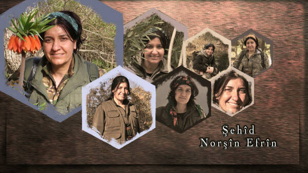 Norşîn Efrîn ist in Efrîn-Raco geboren und mit der Widerstandskultur der kurdischen Freiheitsbewegung aufgewachsen. Ihre Familie gehört zum Stamm Malbata Nebû und steht der Bewegung seit Anfang der 1980er Jahre nahe. Mit der vor einem Jahr bei einem türkischen Drohnenangriff in Rojava getöteten YPJ-Kommandantin Jiyan Tolhildan war sie verwandt. Norşîn lernte als Kind Kader der PKK kennen und wollte wie sie leben und kämpfen. Ihre Kindheitsträume spielten sich in den Bergen Kurdistans ab. Als Jugendliche wollte sie sich mehrmals der Guerilla anschließen, wurde jedoch abgewiesen, weil sie noch zu jung war. Stattdessen arbeitete sie in der Bevölkerung und fuhr von Dorf zu Dorf, um die Menschen über die Befreiungsbewegung und ihre Ziele aufzuklären. Ihr großer Bruder und mehrere nahe Verwandte und Bekannte gingen zur Guerilla, einige von ihnen kamen im Kampf ums Leben, andere in Gefangenschaft. Dadurch wurde Norşîns emotionale Verbindung mit der Guerilla noch stärker. Ihre kurdische Identität war ihr bewusst, und als junge Frau entwickelte sie aufgrund der von Abdullah Öcalan vorgelegten Analysen auch ein Bewusstsein über die traditionelle Rolle, die Frauen vom System und der Gesellschaft auferlegt wird. Durch ihre Arbeit entwickelte sie sich weiter. Sie ging auf die Menschen in der Bevölkerung zu und vermittelte ihnen die Lebenskultur, die sie von der PKK gelernt hatte. Gleichzeitig lernte sie auch von den Menschen etwas über ihr eigenes Volk. Sie war beliebt und genoss großen Respekt in der Bevölkerung.