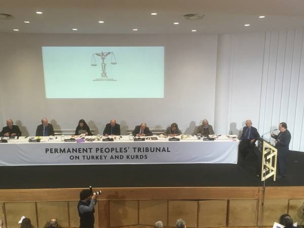 Gestern hat in Paris unter dem Vorsitz von sieben Richter*innen aus verschiedenen Ländern ein internationales Tribunal begonnen. Am ersten Tag der vom permanenten Volkstribunal initiierten Verhandlung wurden Sachverständige und Zeug*innen zu den Kriegsverbrechen des türkischen Staates und den Verbrechen gegen die Menschlichkeit gegen das kurdische Volk angehört. Der Schwerpunkt lag dabei auf den Massakern an der Zivilbevölkerung, die von staatlichen Kräften während des Selbstverwaltungs-Widerstandes in Cizîre, Şirnex, Nisebîn und Sûr begangen worden sind.