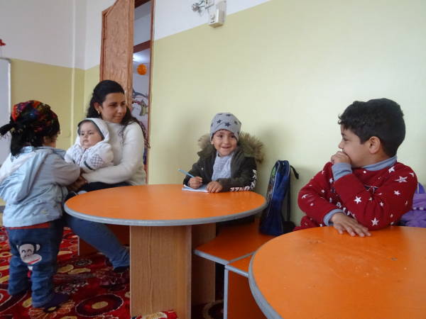 „Die Räumlichkeiten waren auch schon zu Regimezeiten ein Kindergarten, aber alles war total heruntergekommen. Wir haben die sanitären Einrichtungen, die Räume und alles neu gemacht. Der Kindergarten ist von einem großen Garten umgeben. Die Stadtverwaltung hat uns versprochen, dass sie den Garten bald herrichten wird, dann können die Kinder auch draußen spielen. Leider sind unsere Möglichkeiten ziemlich begrenzt, wir können keine Spielsachen für die Kinder kaufen, aber es wird immer besser”, berichtet Feyruz, die von Anfang an beim Aufbau dabei war.